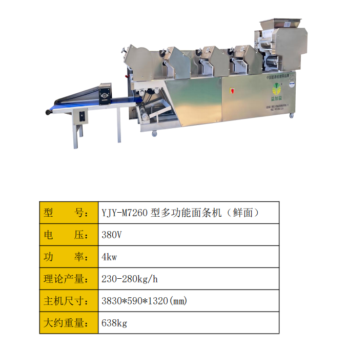益加益集團研發(fā)生產的YJY-M系列面條機,是將傳統(tǒng)模式和現代工藝相結合,經多次技術升級后推出的最新一代多功能自動面條機,整機外觀精美、結構先進,操作方便,安全耐用,噪音低,效率高,省時省工。操作時只需將拌好的面放入機器,通過多道壓面輥自動搟面,一次性成型面條。系列產品只需通過更換不同刀具可以生產:方形面條、圓形面條、刀削面、菱形面、掛面、餃子皮、熱干面、混沌皮等;廣泛適用于賓館、飯店、機關、學校等單位食堂,食品加工廠及個體生產銷售面食之用;我公司也可訂為客戶定制大型面條機。