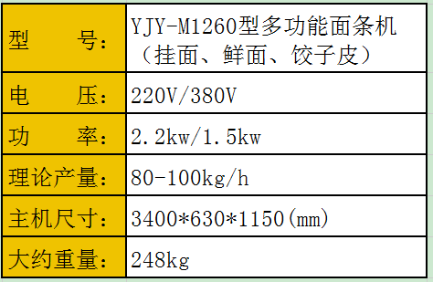 益加益集團(tuán)研發(fā)生產(chǎn)的YJY-M系列面條機(jī),是將傳統(tǒng)模式和現(xiàn)代工藝相結(jié)合,經(jīng)多次技術(shù)升級(jí)后推出的最新一代多功能自動(dòng)面條機(jī),整機(jī)外觀精美、結(jié)構(gòu)先進(jìn),操作方便,安全耐用,噪音低,效率高,省時(shí)省工。操作時(shí)只需將拌好的面放入機(jī)器,通過多道壓面輥?zhàn)詣?dòng)搟面,一次性成型面條。系列產(chǎn)品只需通過更換不同刀具可以生產(chǎn):方形面條、圓形面條、刀削面、菱形面、掛面、餃子皮、熱干面、混沌皮等;廣泛適用于賓館、飯店、機(jī)關(guān)、學(xué)校等單位食堂,食品加工廠及個(gè)體生產(chǎn)銷售面食之用;我公司也可訂為客戶定制大型面條機(jī)。